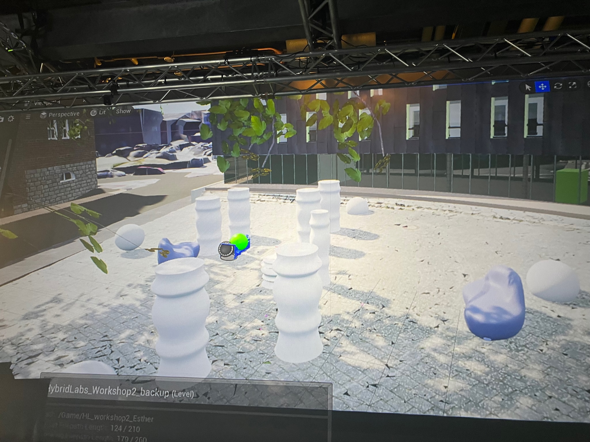 The New Raw designs in HTC’s Digital Twin. Hybrid Lab is used to showcase different implementations as well as a range of possibilities when it comes to design, colours, finishes, etc., all shown in real-time through the digital twin of the physical site where these objects shall be placed.